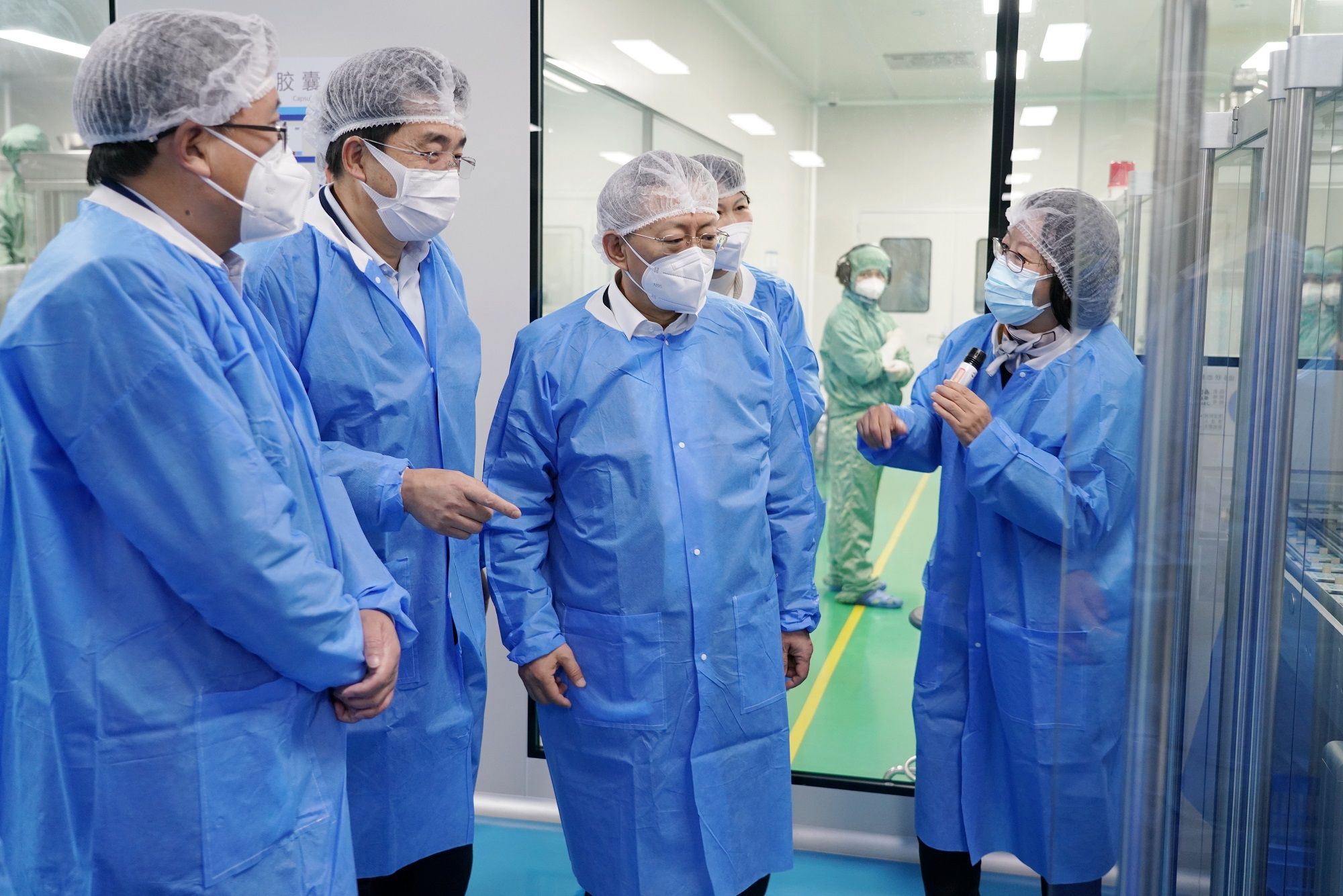 12月23日上午,國務院國資委副主任袁野帶隊到華潤三九調(diào)研華潤抗疫保供工作,實地調(diào)研了抗疫產(chǎn)品生產(chǎn)車間,聽取了王崔軍總經(jīng)理等集團相關領導就華潤整體保產(chǎn)保供保醫(yī)工作的專項匯報。