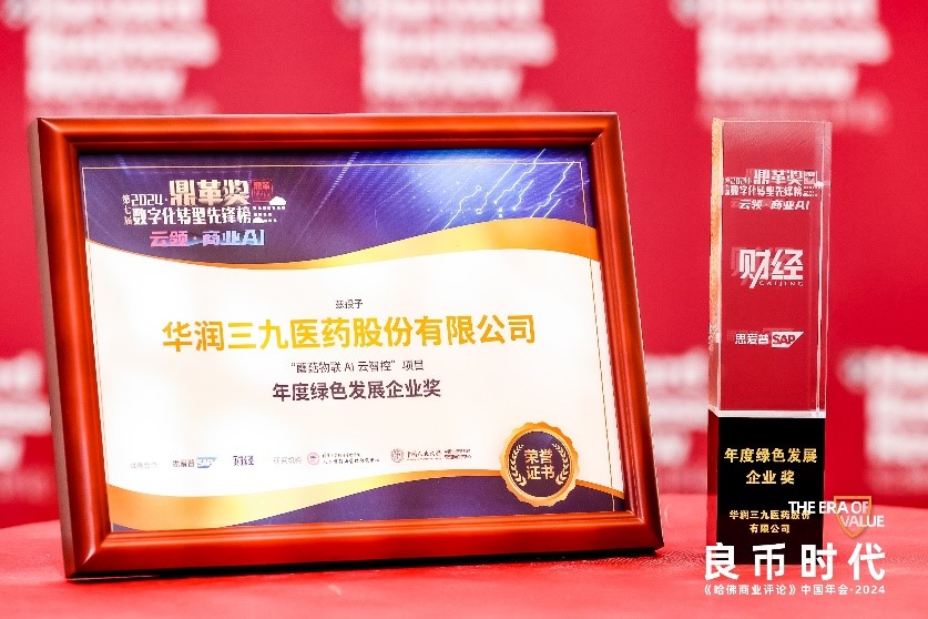 華潤三九榮獲“鼎革獎”數(shù)字化轉(zhuǎn)型先鋒榜-年度綠色發(fā)展企業(yè)獎
