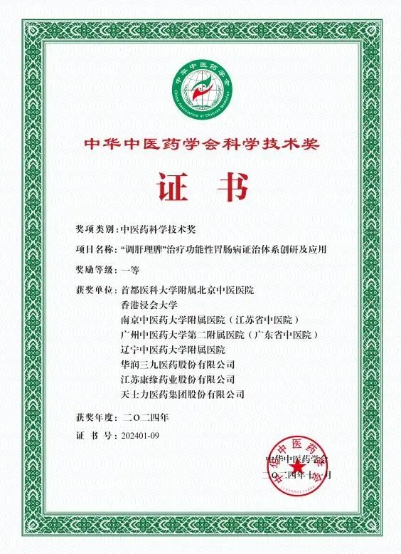 華潤(rùn)三九榮獲兩項(xiàng)中華中醫(yī)藥學(xué)會(huì)科學(xué)技術(shù)獎(jiǎng)一等獎(jiǎng)