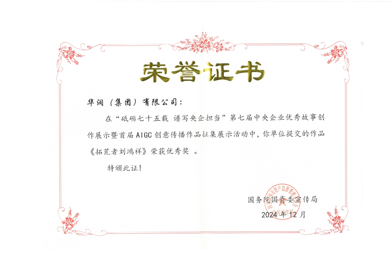 12月3日,第七屆中央企業(yè)優(yōu)秀故事暨首屆AIGC創(chuàng)意傳播作品發(fā)布展示活動(dòng)在北京舉行,主題為“砥礪奮進(jìn)七十五載 譜寫(xiě)央企擔(dān)當(dāng)”。現(xiàn)場(chǎng)公布了優(yōu)秀故事作品、AIGC優(yōu)秀作品、優(yōu)秀組織獎(jiǎng)等多項(xiàng)榮譽(yù),并舉辦了中央企業(yè)優(yōu)秀作品的展演活動(dòng)。華潤(rùn)三九(雅安)黃玉偉創(chuàng)作的精彩故事《拓荒者劉鴻祥》,在各中央企業(yè)報(bào)送的2600余件圖文作品中脫穎而出,榮獲優(yōu)秀獎(jiǎng)。