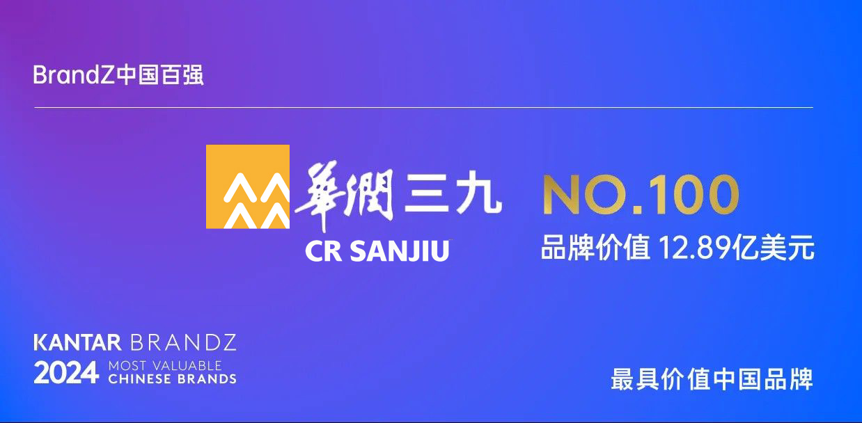 華潤(rùn)三九再次上榜“2024凱度BrandZ最具價(jià)值中國(guó)品牌100強(qiáng)”