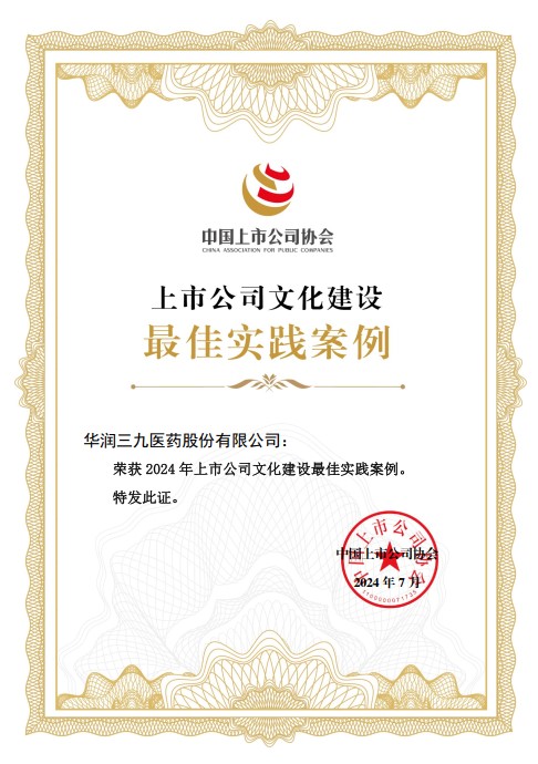 華潤三九獲評“2024年上市公司文化建設(shè)最佳實踐案例”