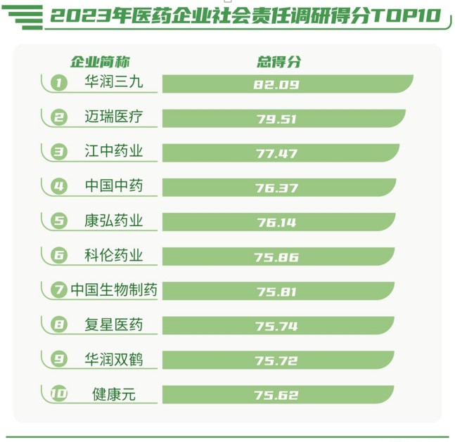 華潤三九入選南方周末“2023年醫(yī)藥企業(yè)社會責(zé)任調(diào)研榜”第一