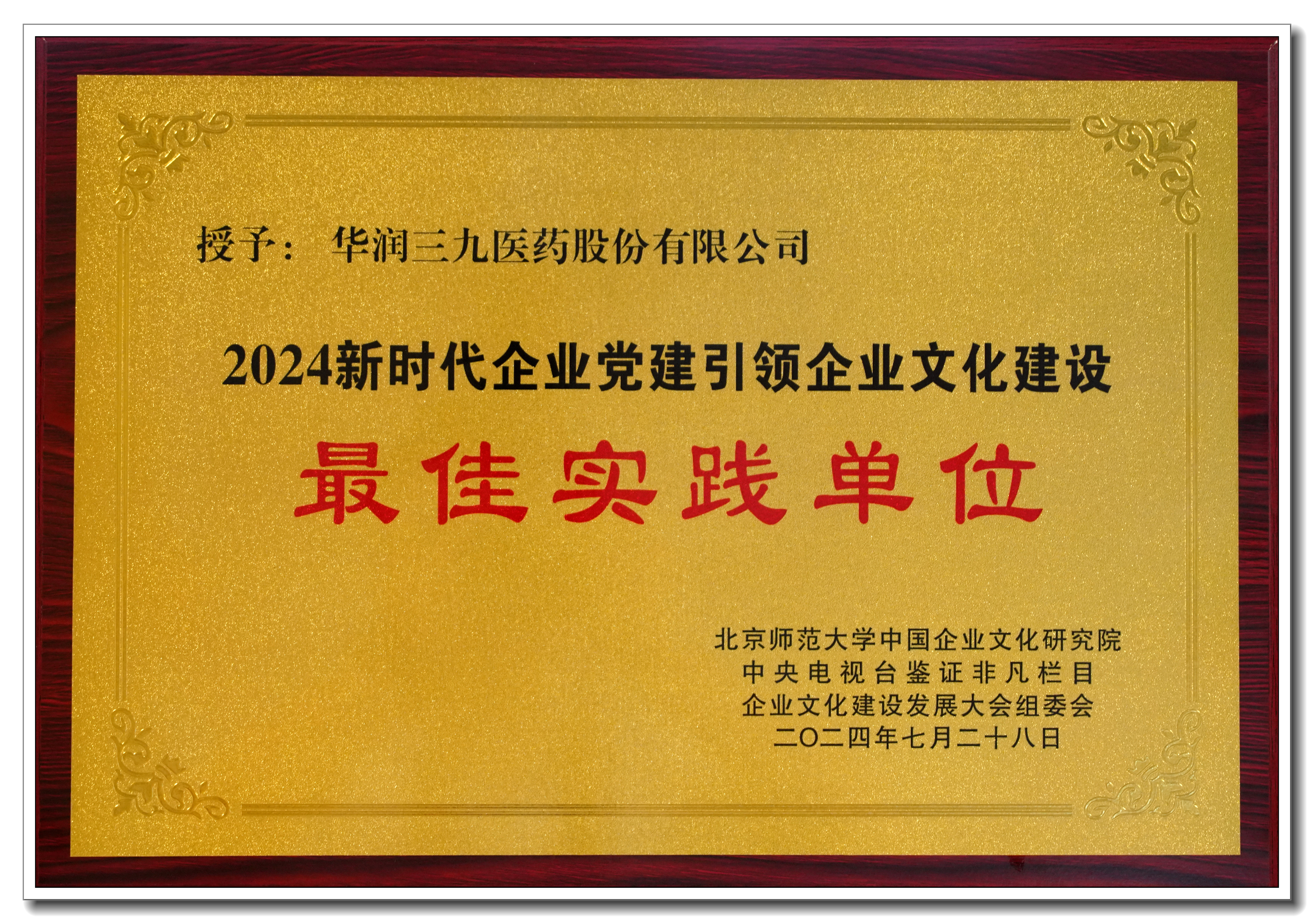 華潤三九獲評“2024新時代企業(yè)黨建引領(lǐng)企業(yè)文化建設(shè)最佳實踐單位”