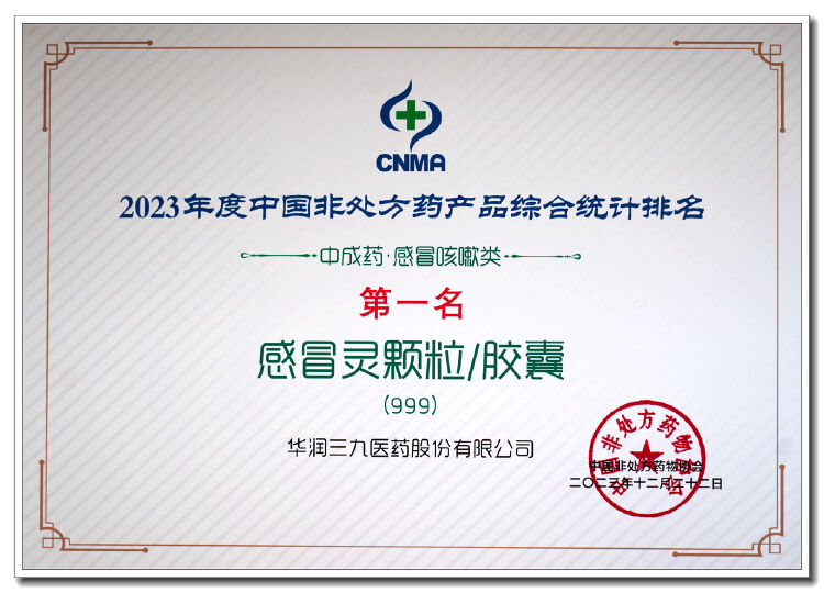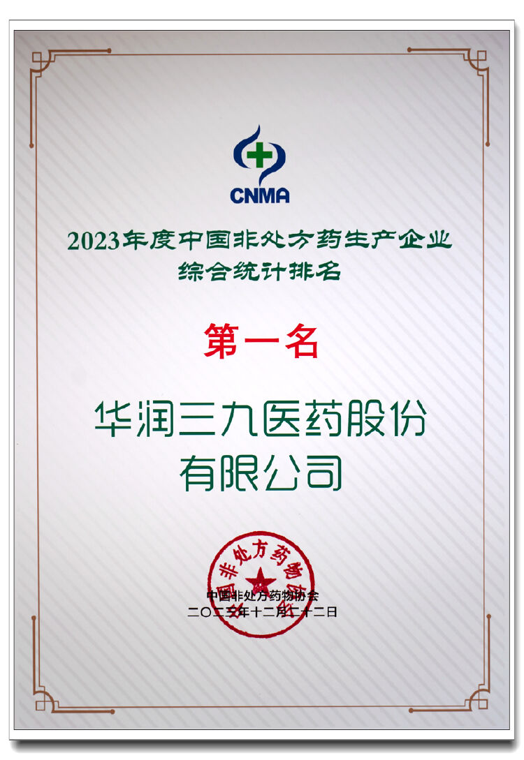 華潤(rùn)三九蟬聯(lián)“2023年度中國(guó)非處方藥生產(chǎn)企業(yè)排行榜”第一名