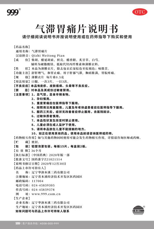 氣滯胃痛片15片x2板