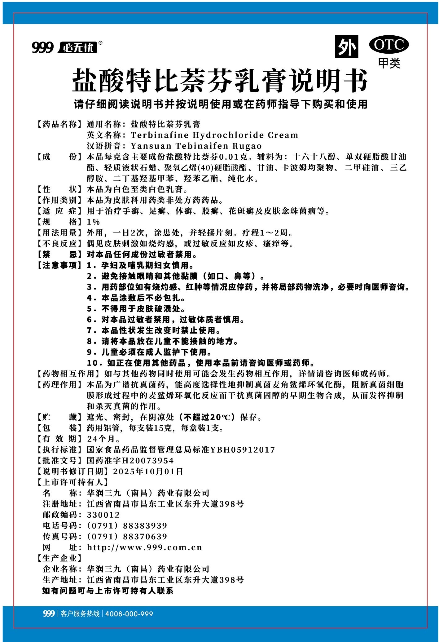 鹽酸特比萘芬乳膏-南昌三九(鋁管裝)