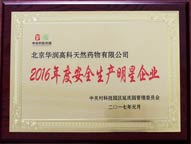 2017年1月18日,北京華潤(rùn)高科天然藥物有限公司獲評(píng)中關(guān)村科技園區(qū)延慶工業(yè)園2016年度“安全生產(chǎn)明星企業(yè)”,這是對(duì)華潤(rùn)高科過(guò)去一年安全生產(chǎn)工作的肯定。