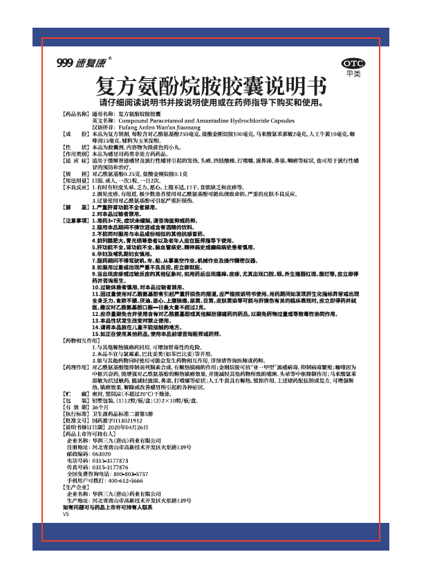 復(fù)方氨酚烷胺膠囊12粒、20粒說(shuō)明書v5