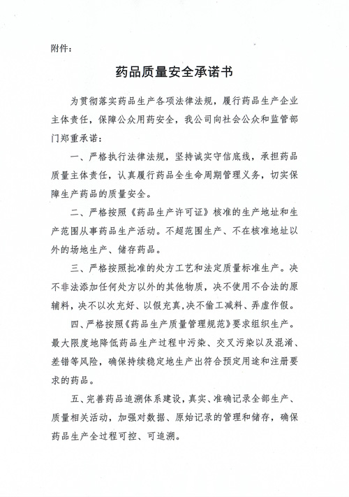 藥品質(zhì)量安全承諾書