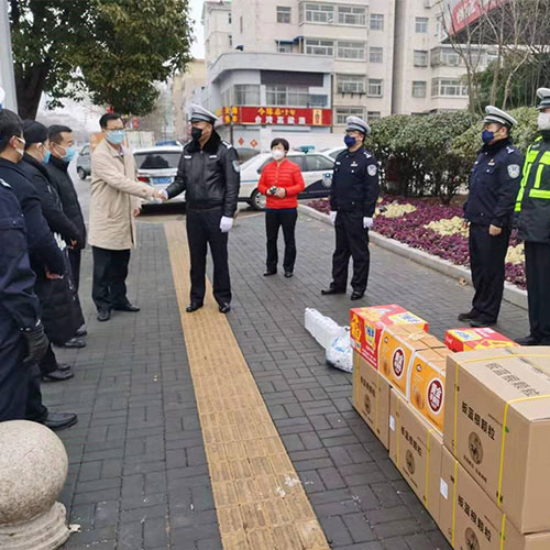 2月6日下午,華潤(rùn)三九(棗莊)負(fù)責(zé)人謝志堅(jiān)、朱曉倩帶隊(duì),將50箱板藍(lán)根藥品送至棗莊市高新區(qū)管委會(huì),并同高新區(qū)管委會(huì)韓耀輝主任和經(jīng)發(fā)局崔玉紅局長(zhǎng)一同對(duì)高新區(qū)公安分局民警和戰(zhàn)斗在一線的值班卡點(diǎn)交通警察進(jìn)行了慰問(wèn)。