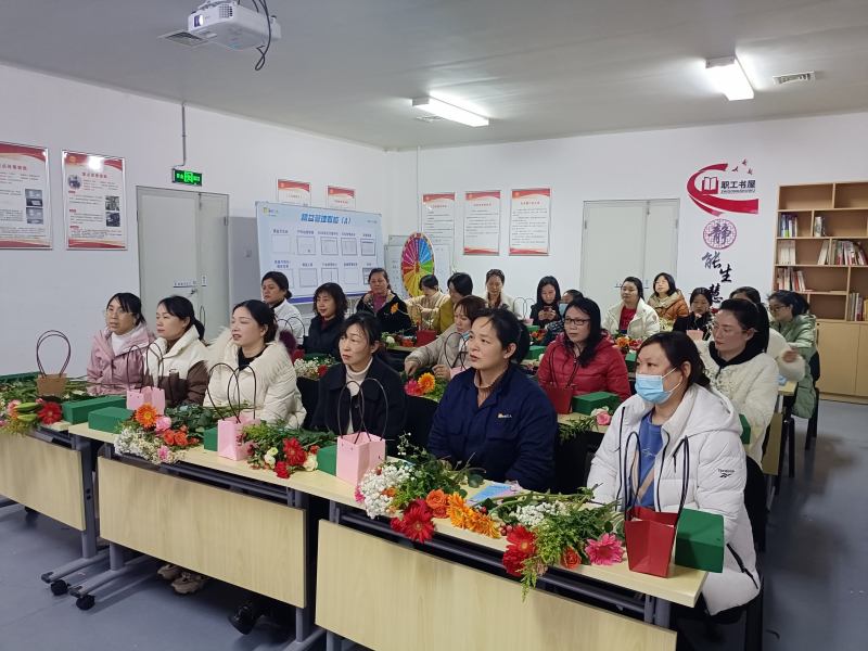 開展“巾幗風(fēng)采”活動。3月7日組織開展了花藝沙龍活動,邀請了專業(yè)的插花老師進(jìn)行授課,在花藝沙龍課上,女員工們大膽發(fā)揮自己想象,將玫瑰、康乃馨等多種花材,修剪、整枝,根據(jù)不同的色彩、形狀,不斷嘗試,錯落有致地搭配在一起,再加上枝葉精心點(diǎn)綴,心與花交融,情與美互通,女員工們用靈思巧手制作出獨(dú)具魅力的插花作品,為自己送上了一份特別的節(jié)日禮物。