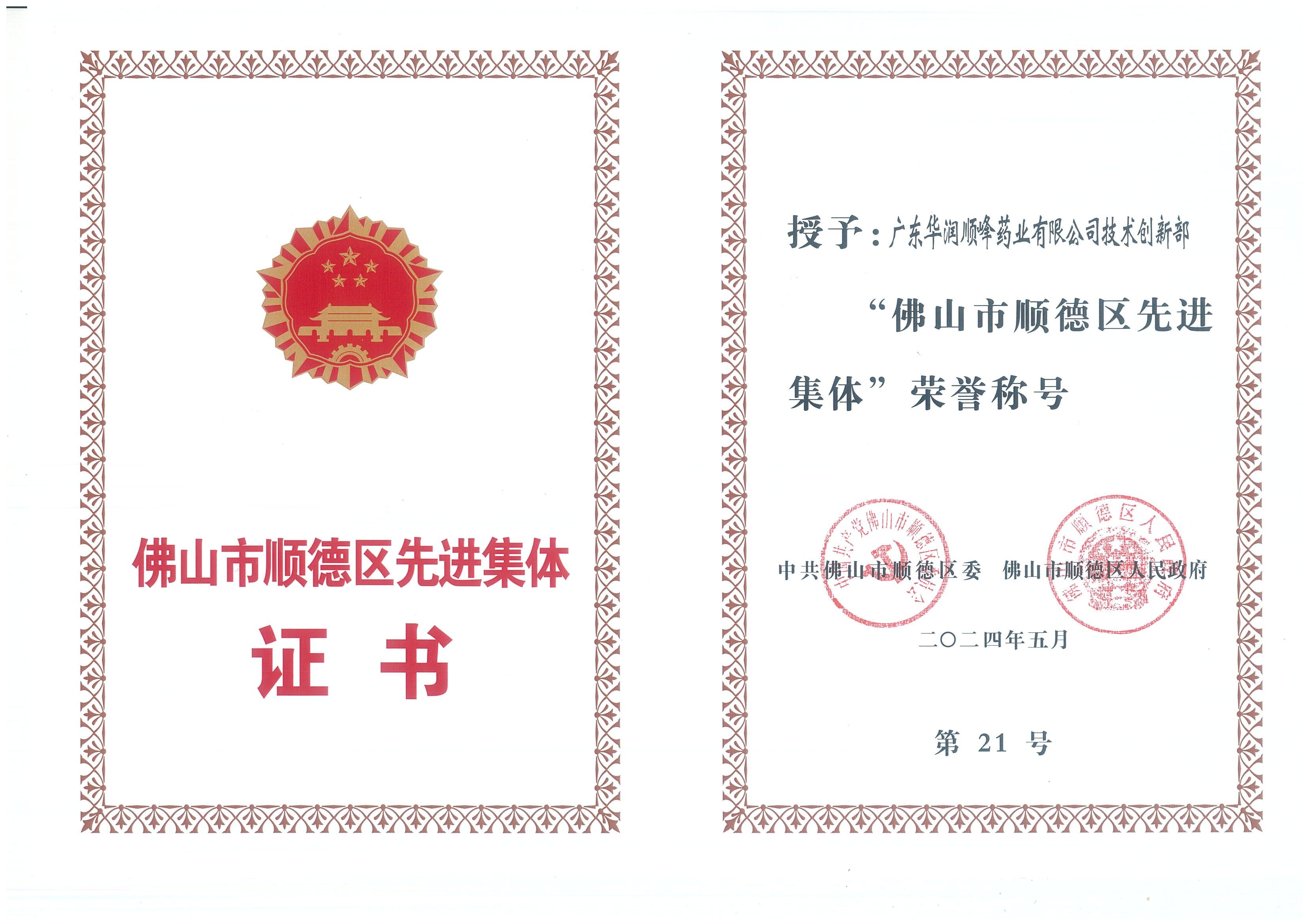 華潤順峰技術創(chuàng)新部榮獲佛山市順德區(qū)先進集體榮譽稱號
