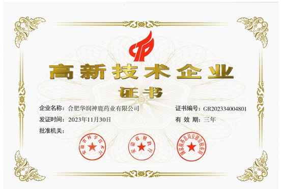 2024年1月18日,合肥華潤(rùn)神鹿藥業(yè)有限公司獲安徽省科技廳、財(cái)政廳和稅務(wù)局頒發(fā)的高新技術(shù)企業(yè)證書(shū),標(biāo)志著華潤(rùn)神鹿順利通過(guò)“高新技術(shù)企業(yè)”重新認(rèn)定。按照《高新技術(shù)企業(yè)認(rèn)定管理辦法》(國(guó)科發(fā)火[2016]32號(hào))要求,高新技術(shù)企業(yè)認(rèn)定每三年重新認(rèn)定一次,2023年是華潤(rùn)神鹿第六次開(kāi)展高新技術(shù)企業(yè)認(rèn)定。自2008年至今,已連續(xù)15年認(rèn)定為高新技術(shù)企業(yè),標(biāo)志華潤(rùn)神鹿科技組織管理水平、科研成果轉(zhuǎn)化能力、自主研發(fā)生產(chǎn)的產(chǎn)品得到國(guó)家科技部門(mén)的充分認(rèn)可。下一步,華潤(rùn)神鹿將進(jìn)一步加大科技創(chuàng)新投入,加強(qiáng)科技創(chuàng)新人才隊(duì)伍建設(shè),加速科技創(chuàng)新成果轉(zhuǎn)化,不斷提升科技創(chuàng)新活力與能力,持續(xù)推動(dòng)企業(yè)高質(zhì)量發(fā)展。