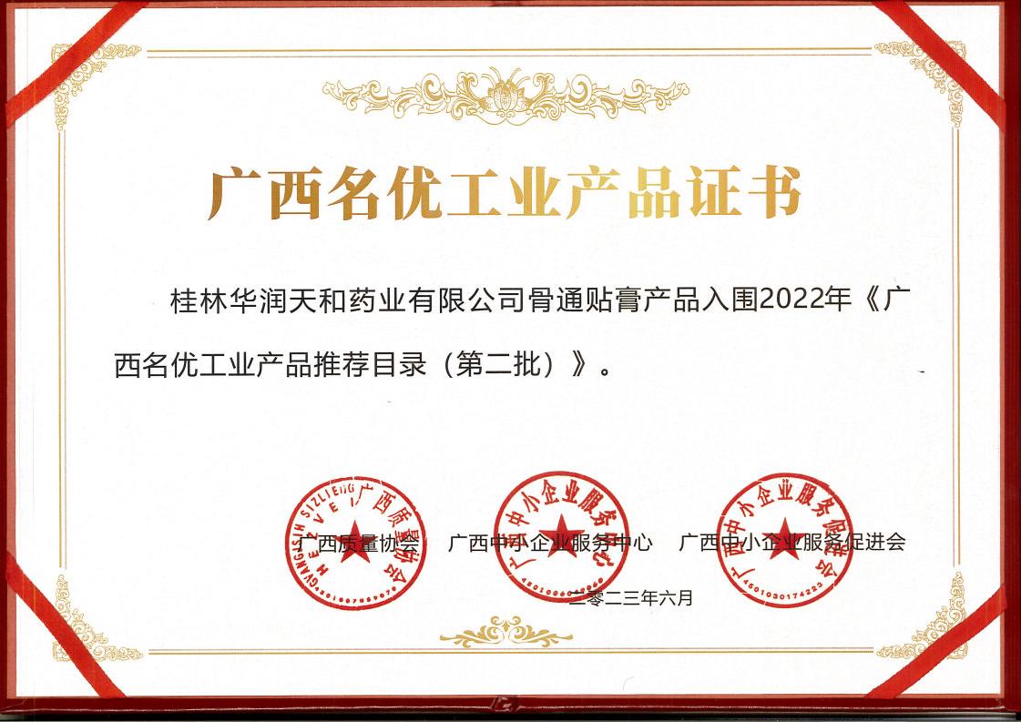 華潤天和“骨通貼膏”入選《廣西名優(yōu)工業(yè)產(chǎn)品推薦目錄》